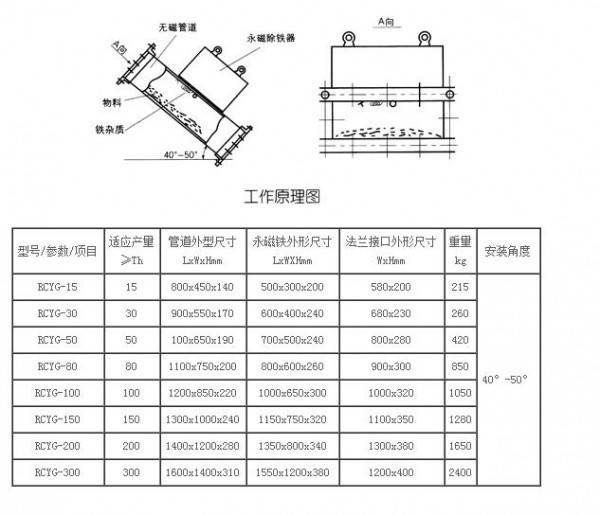 点。适合于无输送胶带、下了溜槽、链板机下料位置等场合的除铁。工作时散状物料进入无磁管道再通过永磁
